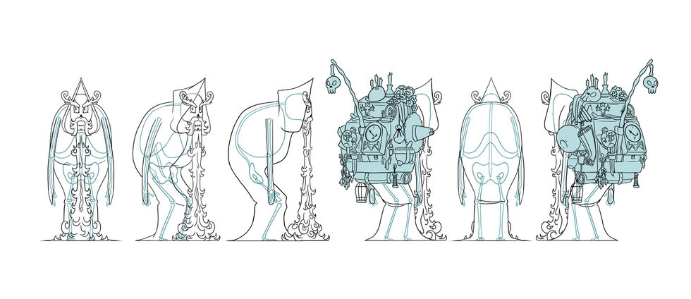 I designed a villain and a sidekick for a 3D production with the style of The Book of Life.
