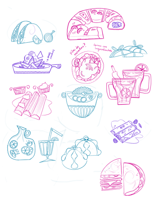 Illustration and layout design for a calendar inspired by Mexican recipes. Initially intended as a Christmas gift for a friend from Mexico who missed her home.
